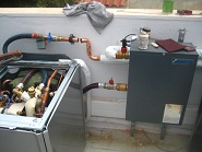 Στην αρχή γίνονται οι κατάλληλες συνδέσεις του υδραυλικού κυκλώματος. Χρησιμοποιούνται χάλκινοι σωλήνες διατομής συχνότερα Φ28-Φ35 (ανάλογα με τον όγκο νερού-θερμίδες κλπ.) οι οποίοι συγκολλούνται με μαλακή κόλληση (ιδιαίτερη προσοχή θέλει η διαδικασία με κοπή, καθαρισμό, λείανση, εφαρμογή αποξειδωτικής πάστας κλπ.). Τοποθετούνται επίσης και στην επιστροφή και στην προσαγωγή αυτόματοι πλήρωσης και εξαεριστικά. Προσοχή πρέπει να δίνεται στην κατάλληλη μόνωση των σωληνώσεων (πάχος >10μμ).