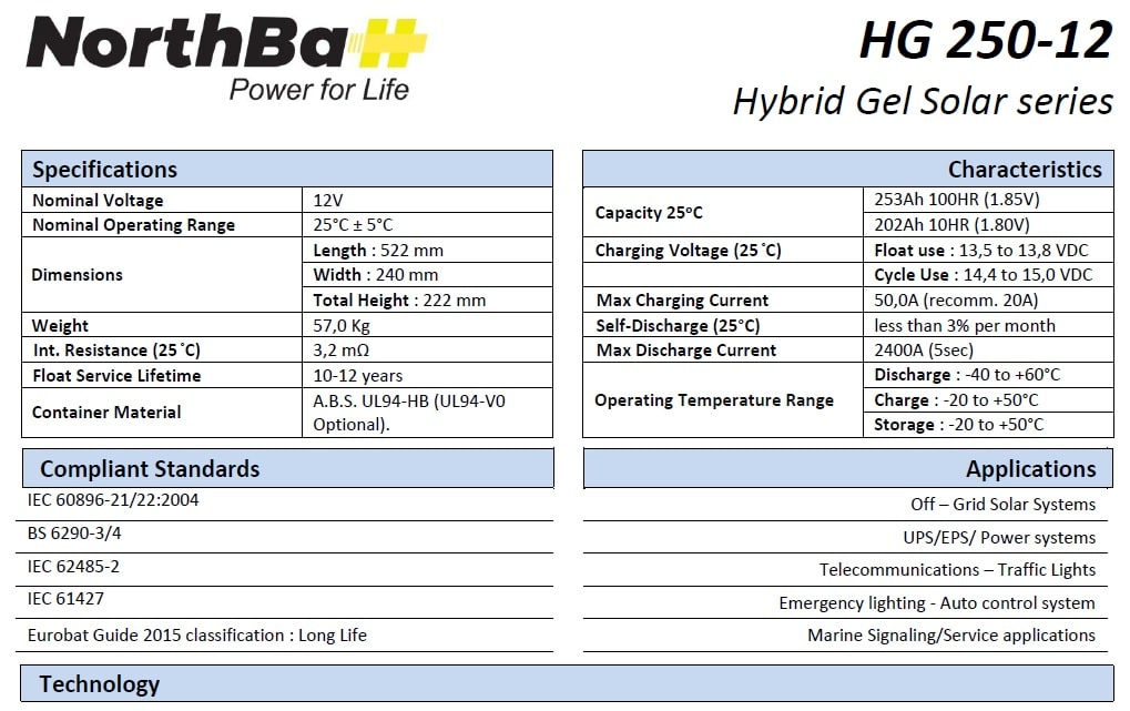 -μπαταρία Northbatt Hybrid GEL 12-250 (250Ah @ C100) -> 340€+ΦΠΑ