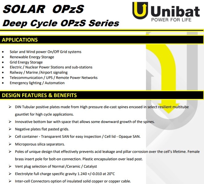 Περισσότερες πληροφορίες για Unibat solar Opzs μπαταρίες